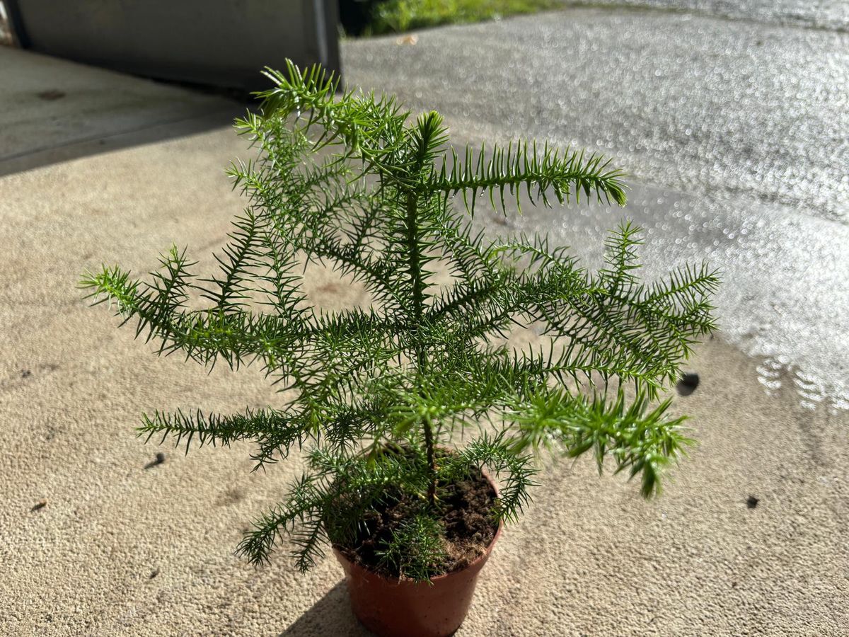 Araucaria heterophylla, que também podemos conhecer como pinheiro da Ilha Norfolk ou araucária excelsa. É uma conífera perene, que cresce de forma piramidal e simétrica com ramos horizontais que surgem do mesmo piso. Enviamos para você essas araucárias cultivadas em vasos já enraizadas.