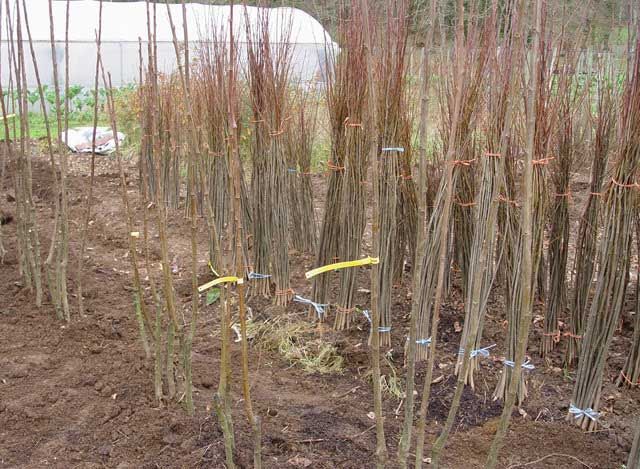 Plantas de castanheiro enxertadas em porta-enxerto híbrido resistente à doença da tinta, com castas tradicionais de castanheiro da Galiza.