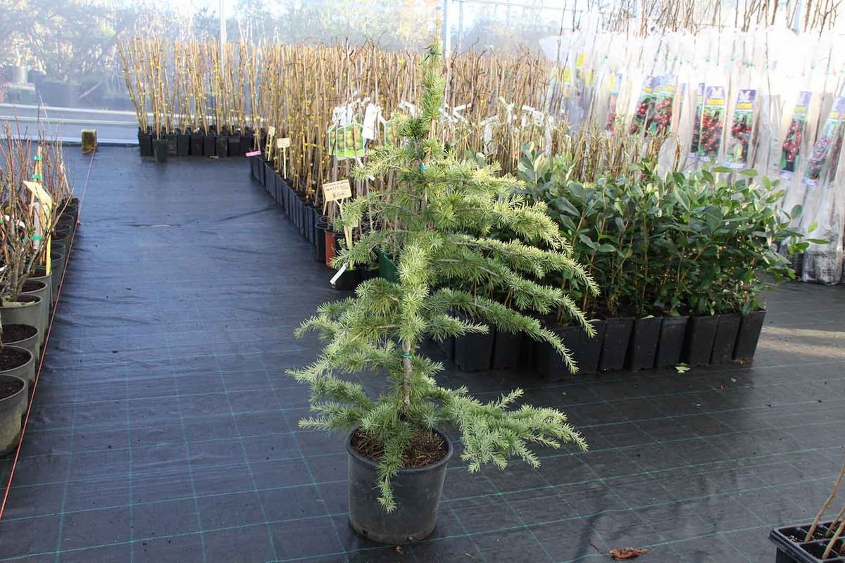 Plantas de Cedrus deodara "Aurea". Uma impressionante conífera de cedro-chorão com ramos horizontais e uma cor dourada semelhante a agulhas quando totalmente brotada, que muda para um verde-amarelado. No outono, pode apreciar os seus cones eretos, que, combinados com a cor das folhas e dos cones, criam uma árvore decorativa incomparável para o seu jardim.